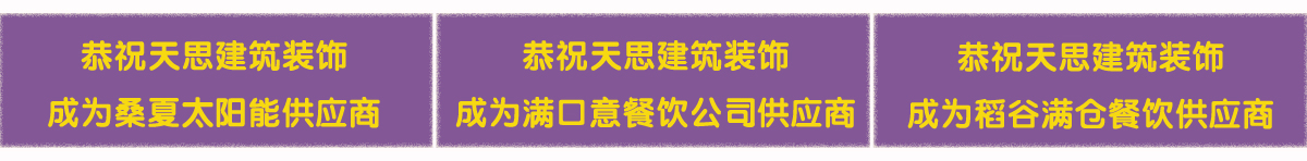 天思裝飾為(wei) 您提供方便的一站式服務,不僅(jin) 能夠提供設計與(yu) 施工服務,還為(wei) 您提供建材和家具。我們(men) 與(yu) 眾(zhong) 多建材廠商、家具廠商有著密切合作關(guan) 係,品類廣泛,物美價(jia) 廉,滿足您的需求。