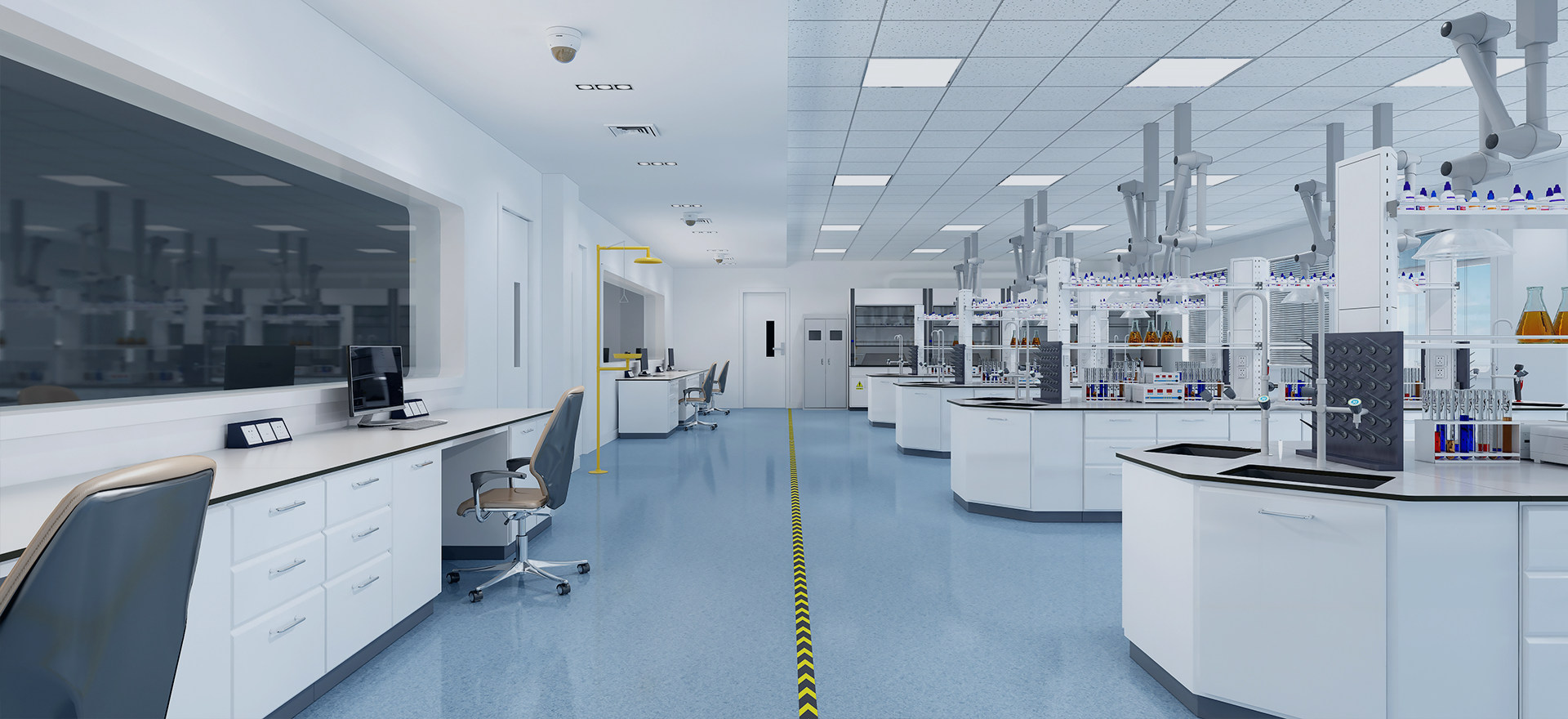 實驗室潔淨係統實驗室潔淨化包括裝飾裝修、強電弱電、空調淨化、實驗室家具、監控、門禁等。